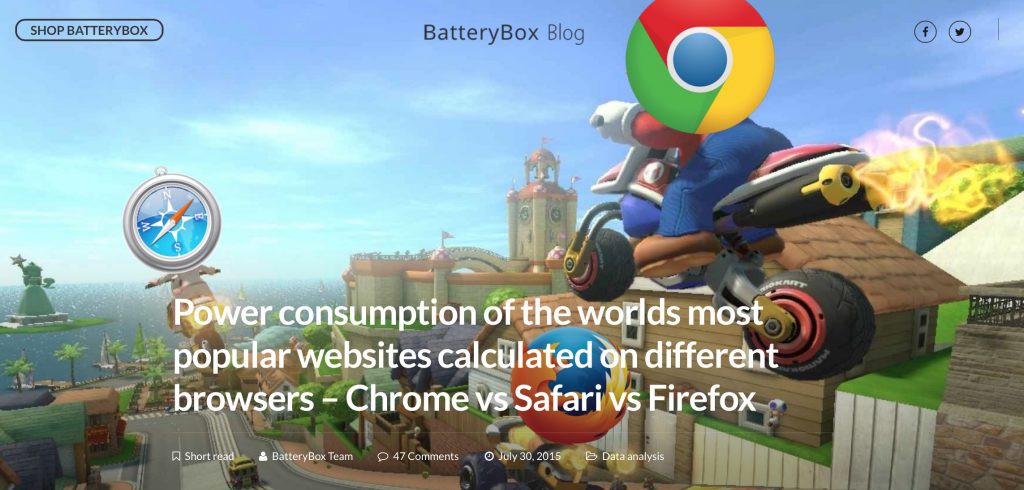 基本的にわたしはsafariがメインですが、どうやらバッテリー消費の検証をおこなったBatteryBoxというバッテリーの販売店が行った検証によると、ほぼすべてのケースにおいてSafariが最も最適という結果になった。